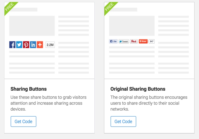 如果你还要增加分享功能,请去 https://www.addthis.com 然后注册,登录等等,然后它会出来让你选择样式,我选免费的如下图右边的那个,点 Get Code。