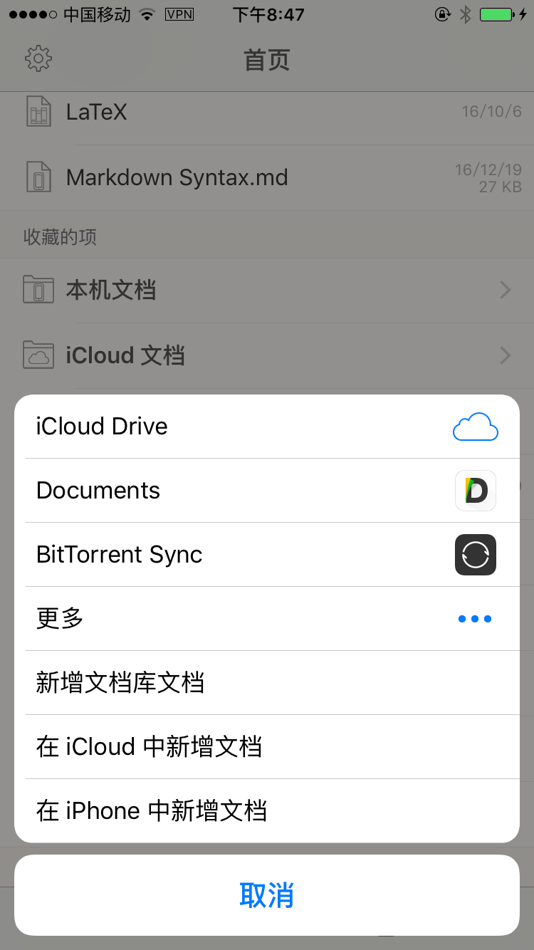 - 现在可以打开 iCloud Drive 和其他 App 的文档了,点首页的 “+” 按钮即可使用此功能,如下面的附图所示。要注意的是,打开的文档不会在最近使用中显示,也不能收藏。