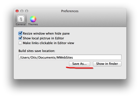 如果你觉得MWeb默认的位置比较不好,您可以改变MWeb网站输出的文件夹,如图我把输出的文件夹改到我的Documents/MWebSites下了。