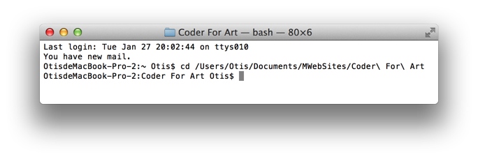 然后打开终端工具(Terminal),打cd (注意cd后带一空格),然后CMD+V,然后Enter,如图: