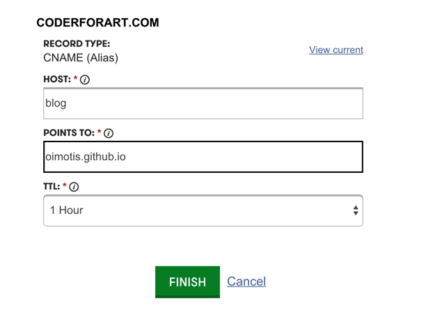 注意,我并没有真设置喔,所以 blog.coderforart.com 是无效的。